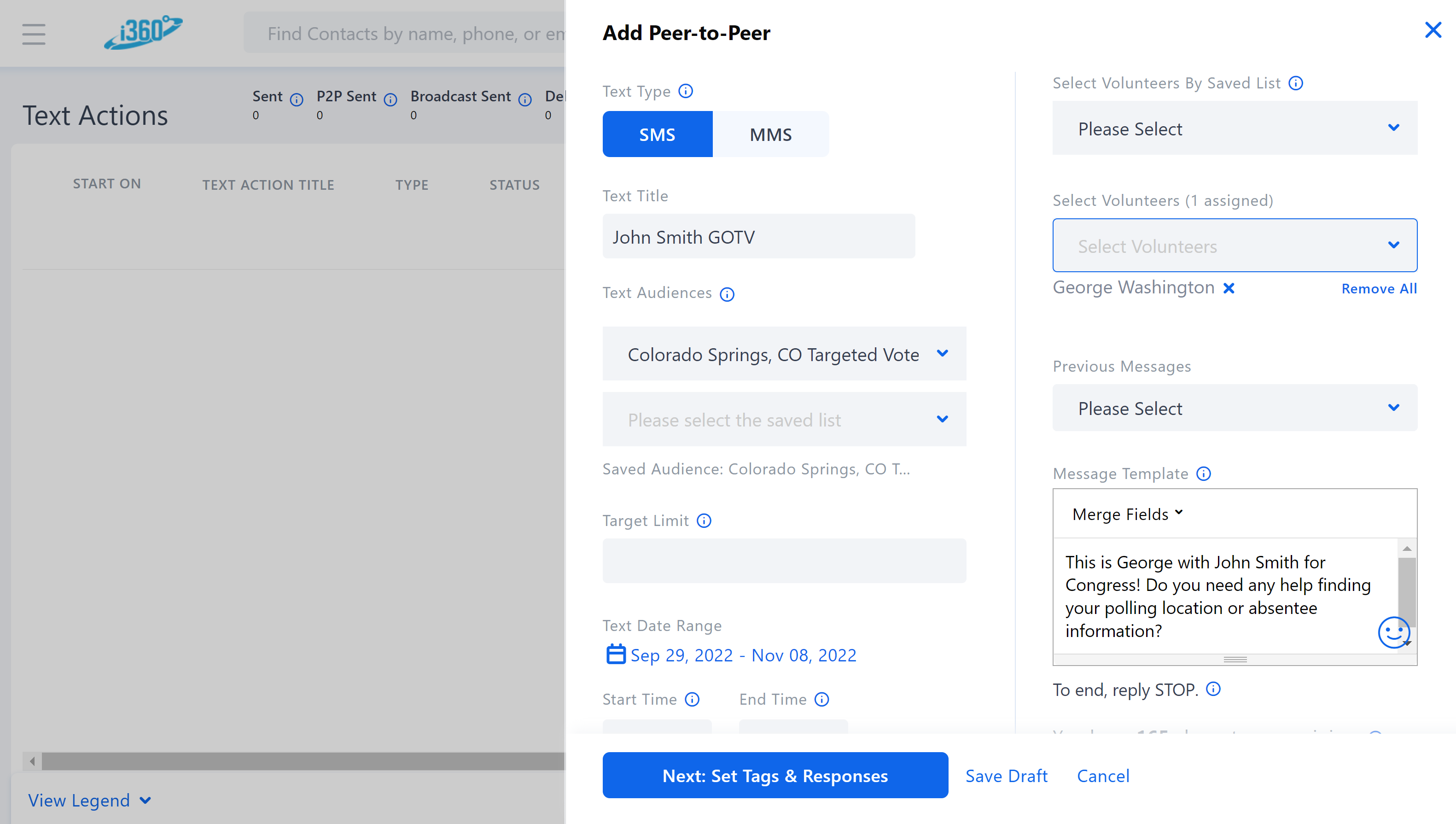 Once you’ve sent your texts, responses will flow into the i360 Text interface for you to review, respond to, and tag.