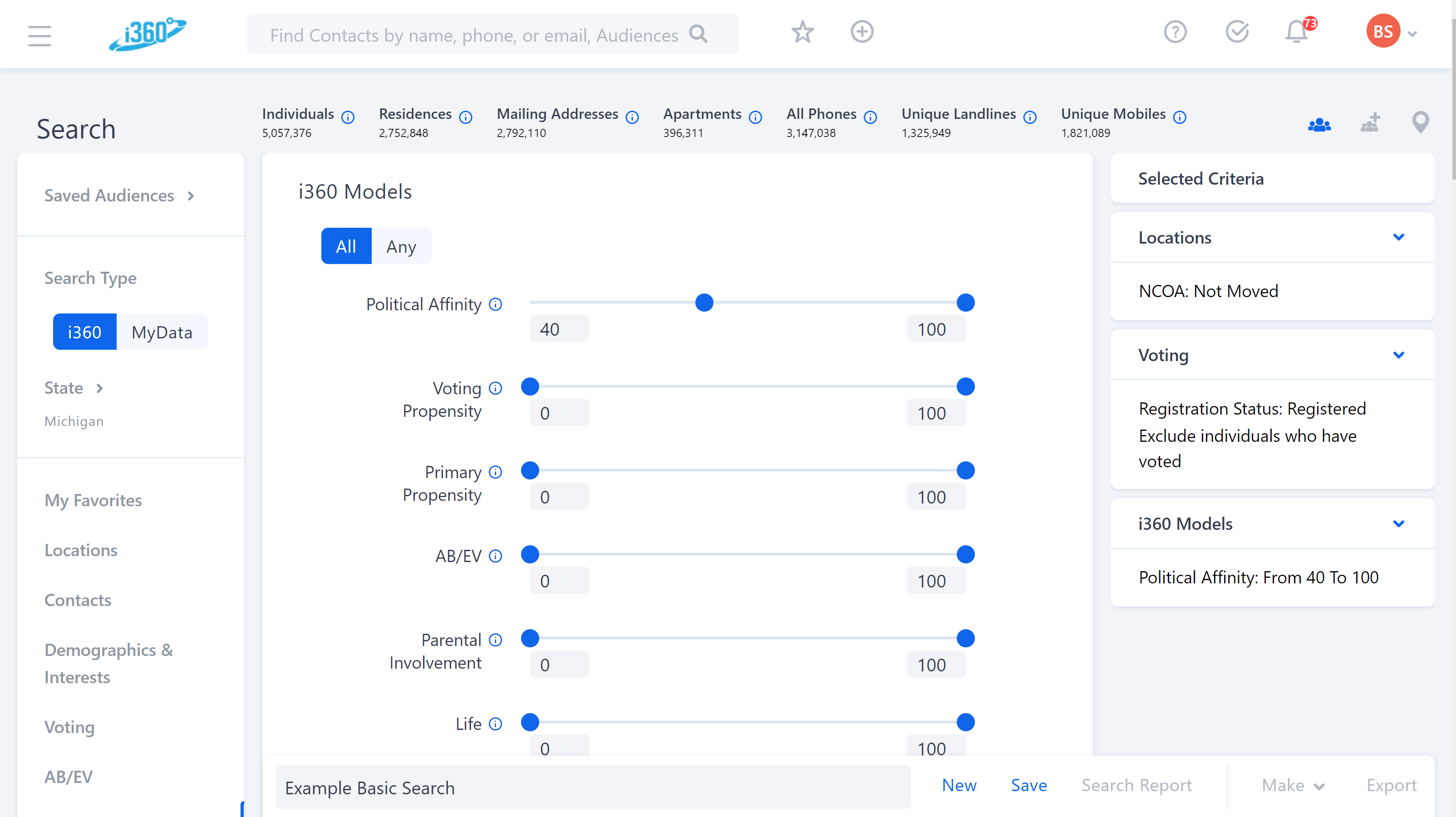 Since i360 Text is fully integrated within the i360 platform and unmatched database, creating audiences is easy and requires no external data.